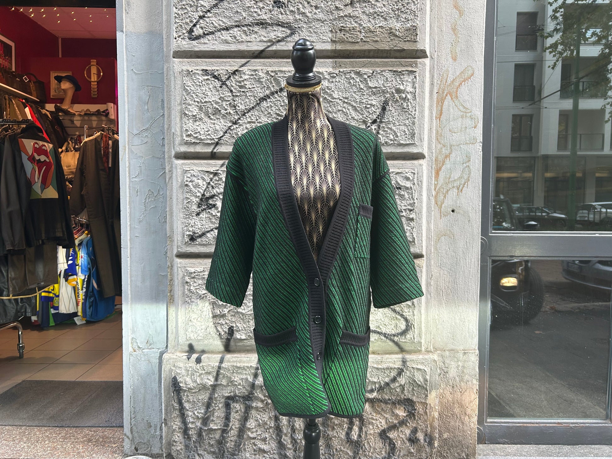 Chiuso da 4 bottoni,con 3 tasche anteriori.