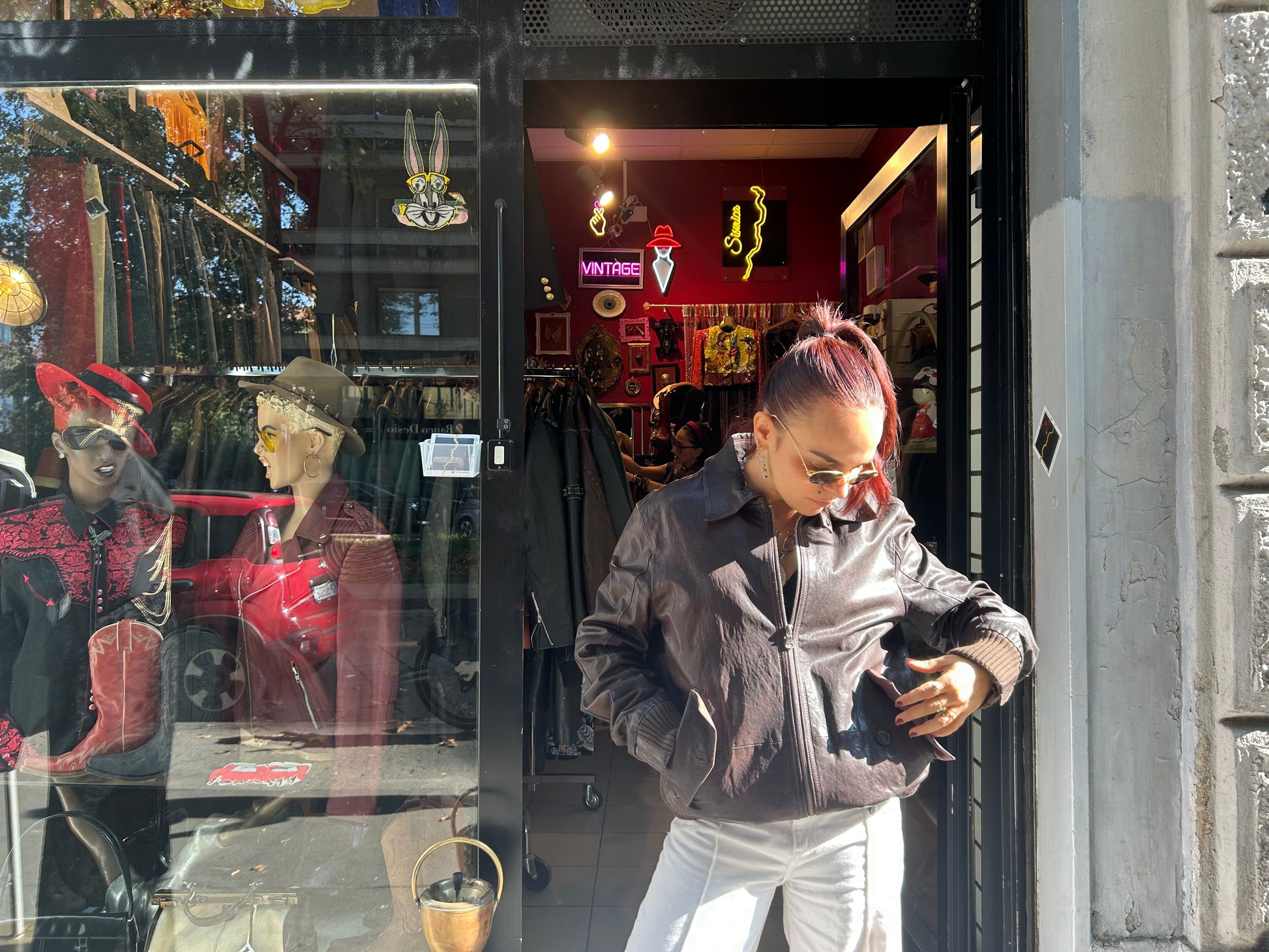 Bomber vintage in pelle marrone Hugo Boss,condizioni pari al nuovo.