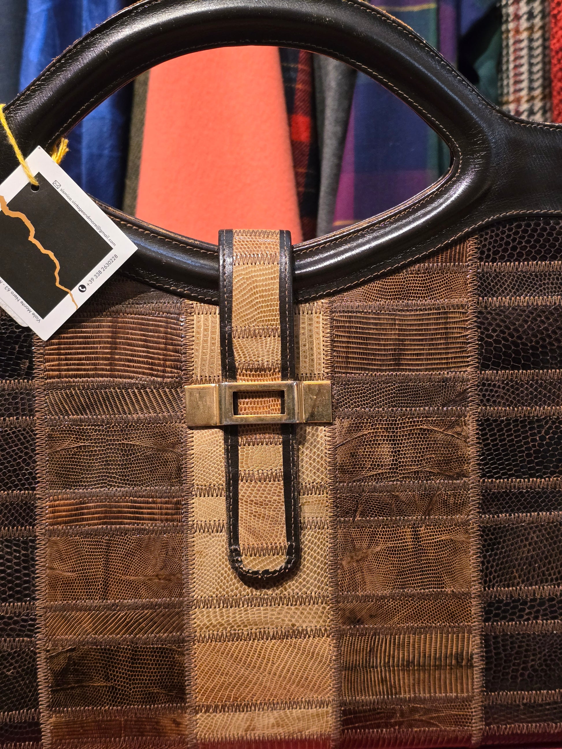 Color marrone,chiusura anteriore a incastro con 2 borroni a pressione