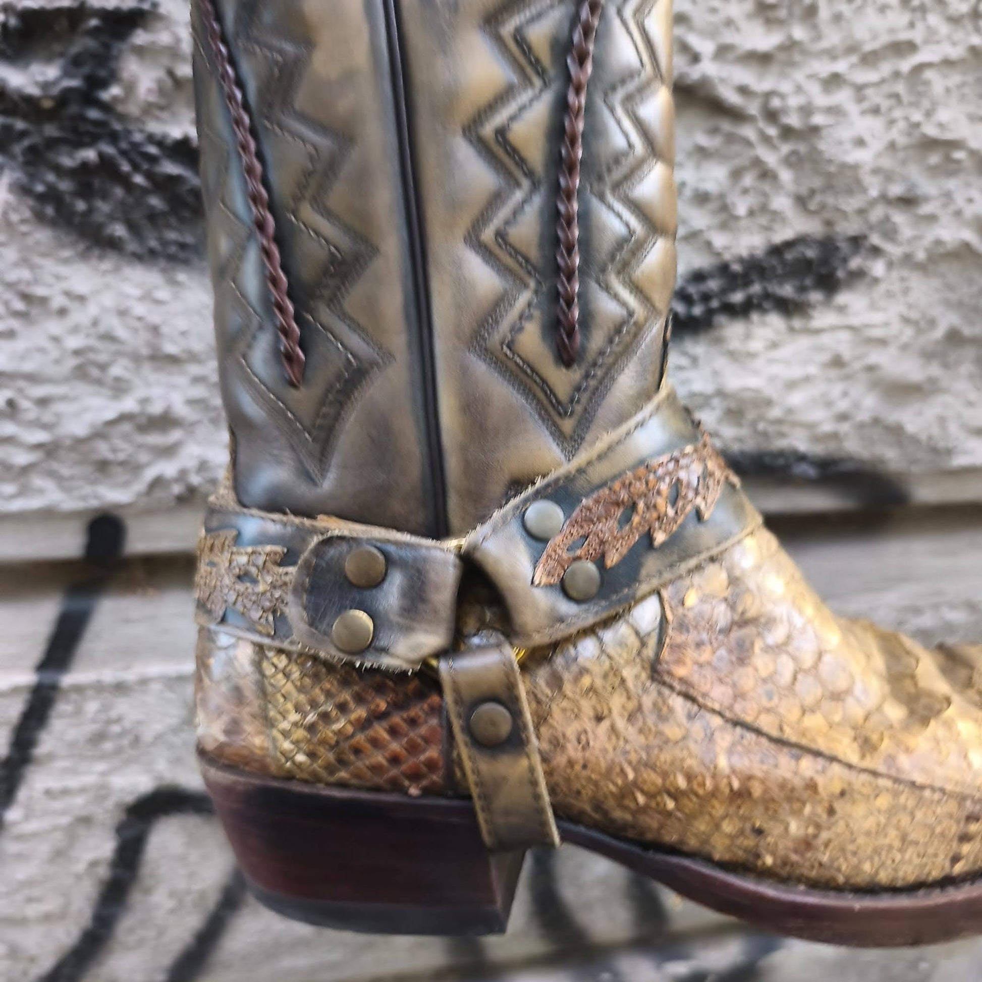 Modello texano realizzato in pelle di pitone e coccodrillo