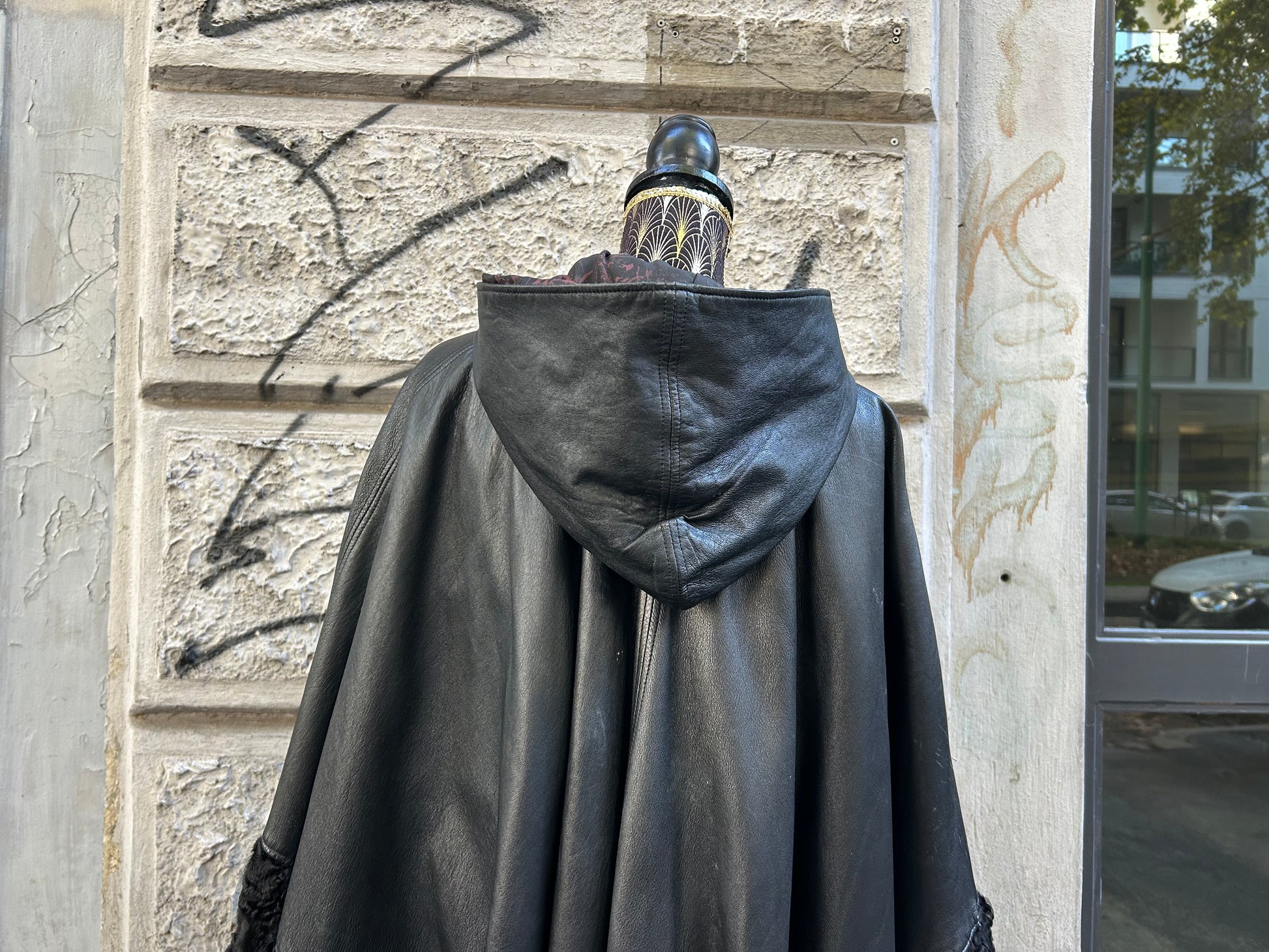 Un capo avvolgente e lussuoso, un capo che unisce la morbidezza dell'astrakan alla robustezza della pelle. Questa cappa è un capospalla unico nel suo genere, un capo che coniuga tradizione e modernità.