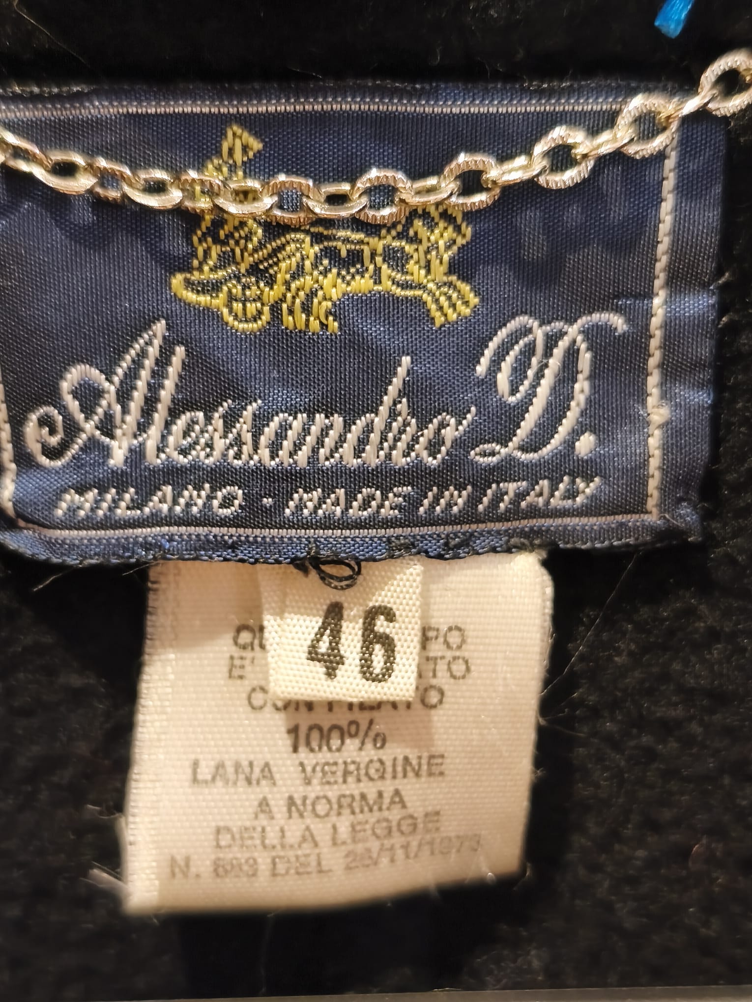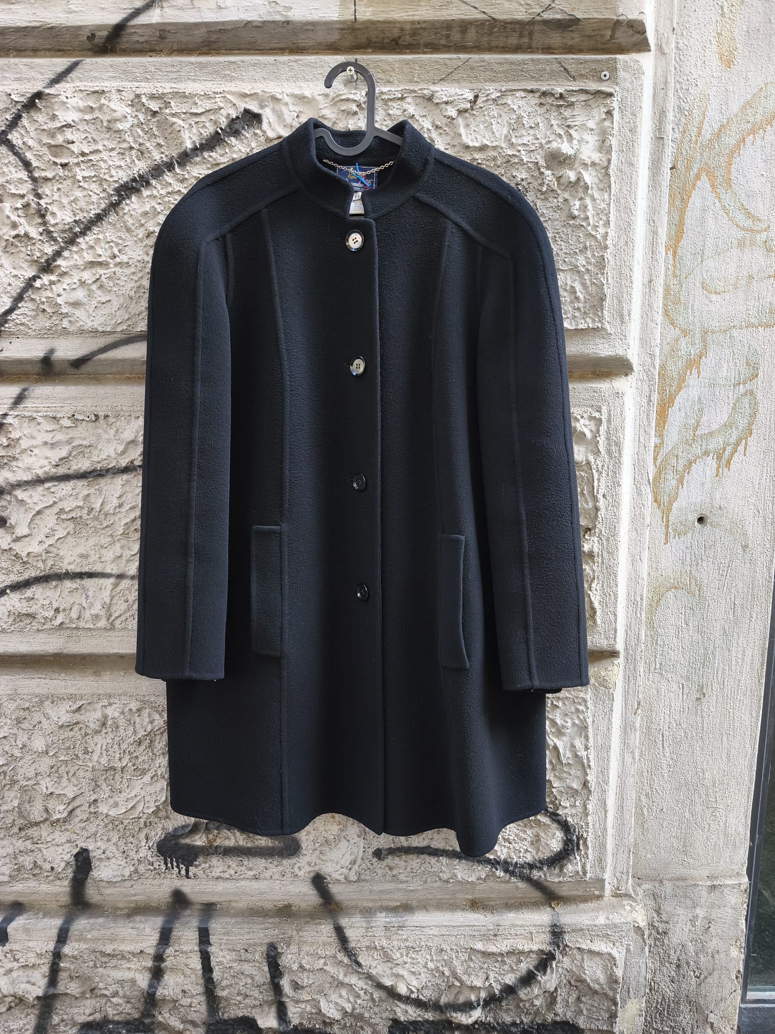 Questo cappotto nero vintage in lana e cashmere é veramente senza tempo