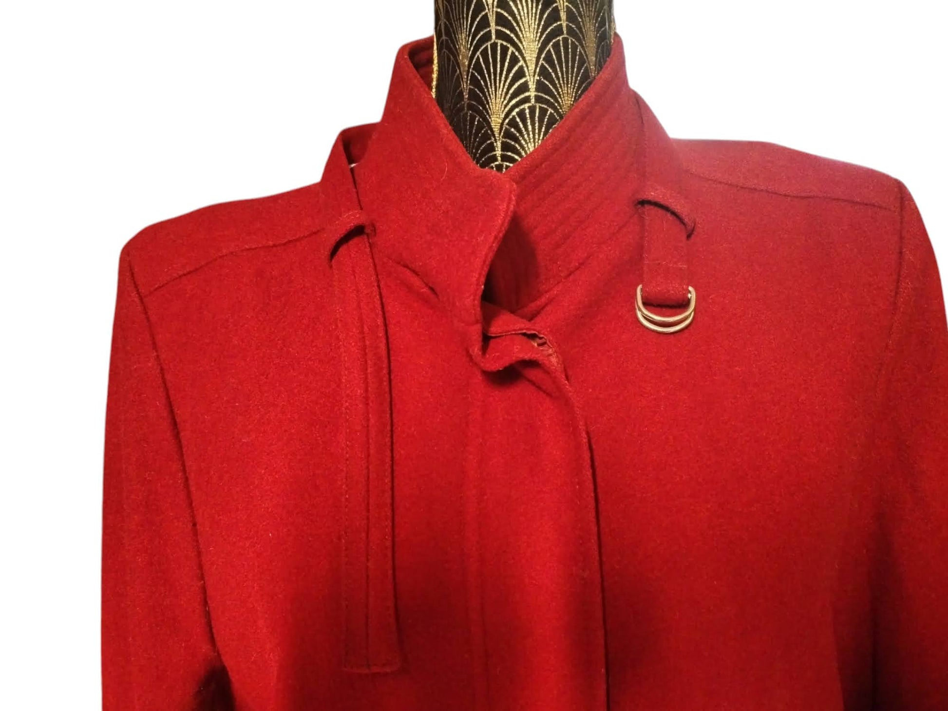 Un capospalla che ti trasporti direttamente negli anni sessanta, un periodo di grande fermento culturale e di sperimentazione estetica. Questo cappottino, nel suo intenso colore rosso, è un vero e proprio pezzo di storia della moda.