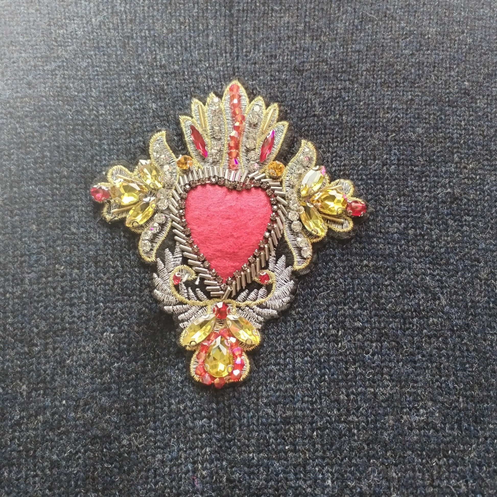 Al centro della schiena troviamo questo cuore sacro,impreziosito da strass che Sismica ha creato per renderlo un capo unico.