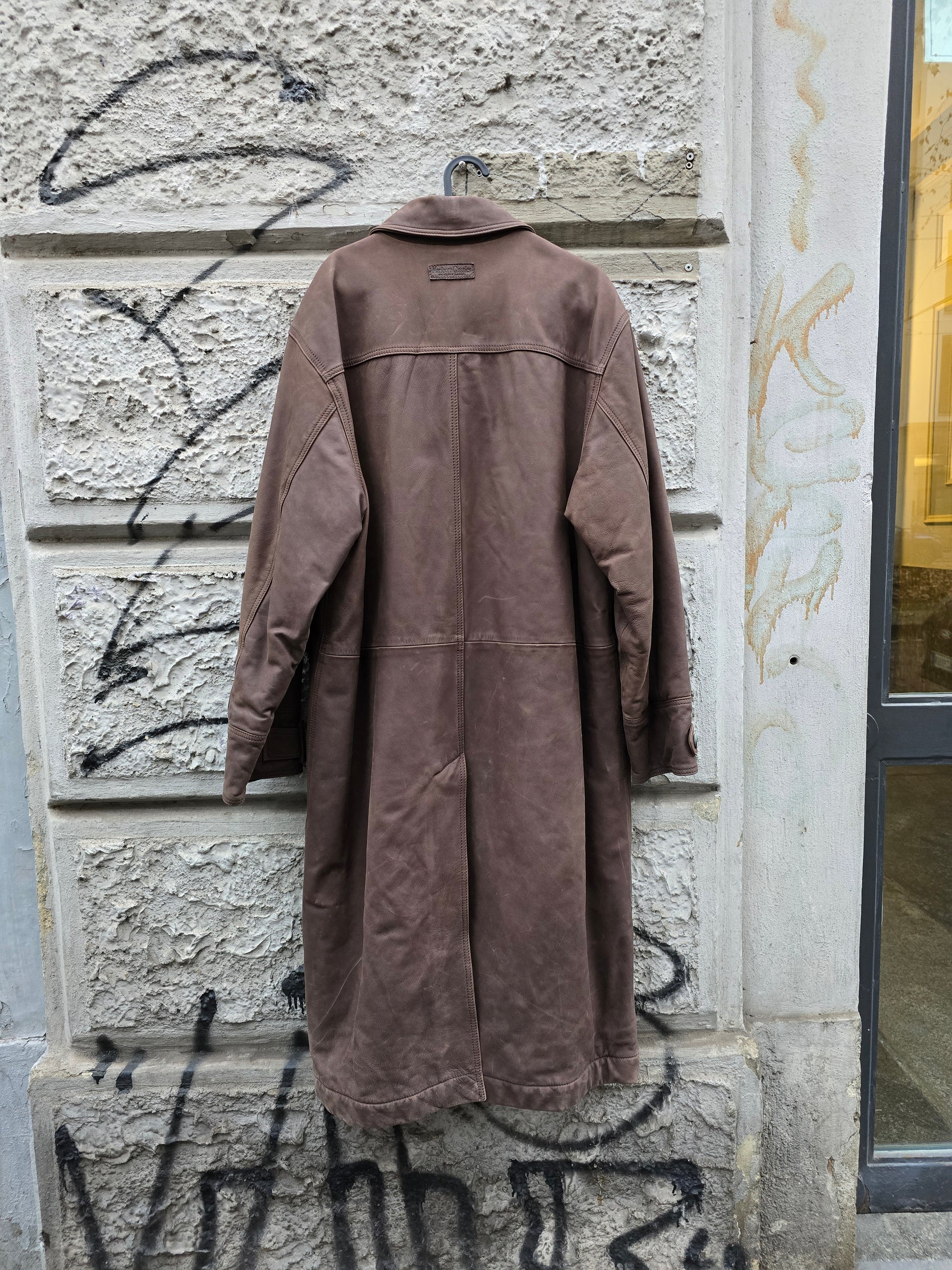 Questo cappotto vintage Marlboro Classics,realizzato in vera pelle