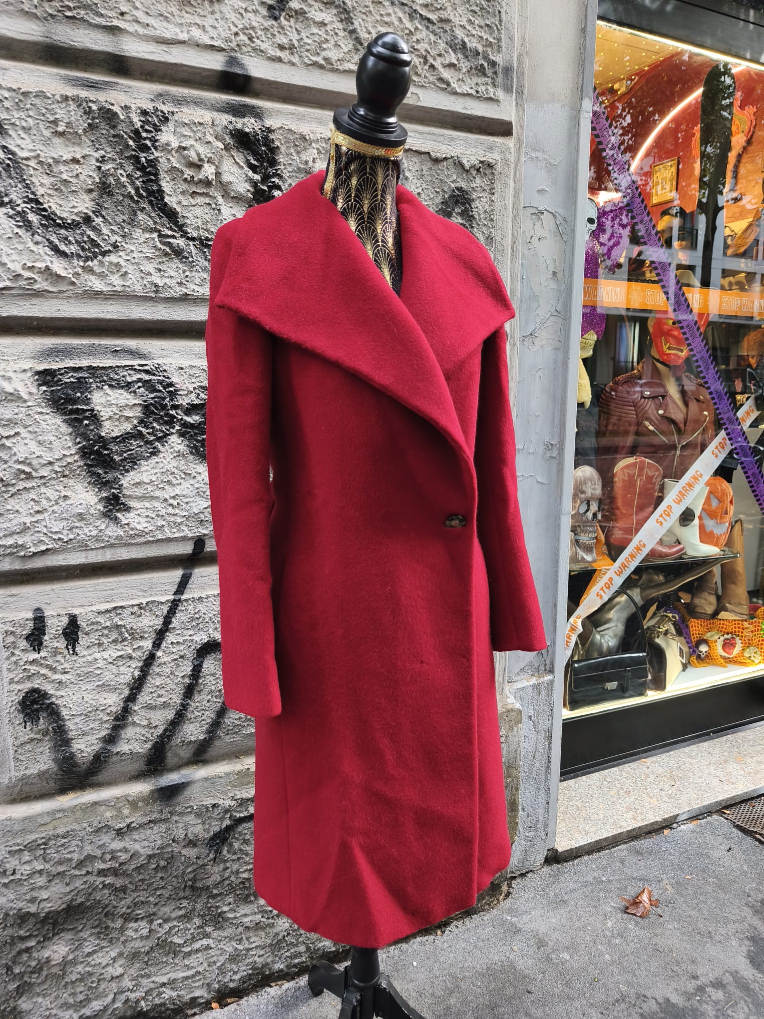 Cappotto donna rosso borgogna in lana vintage Intrend