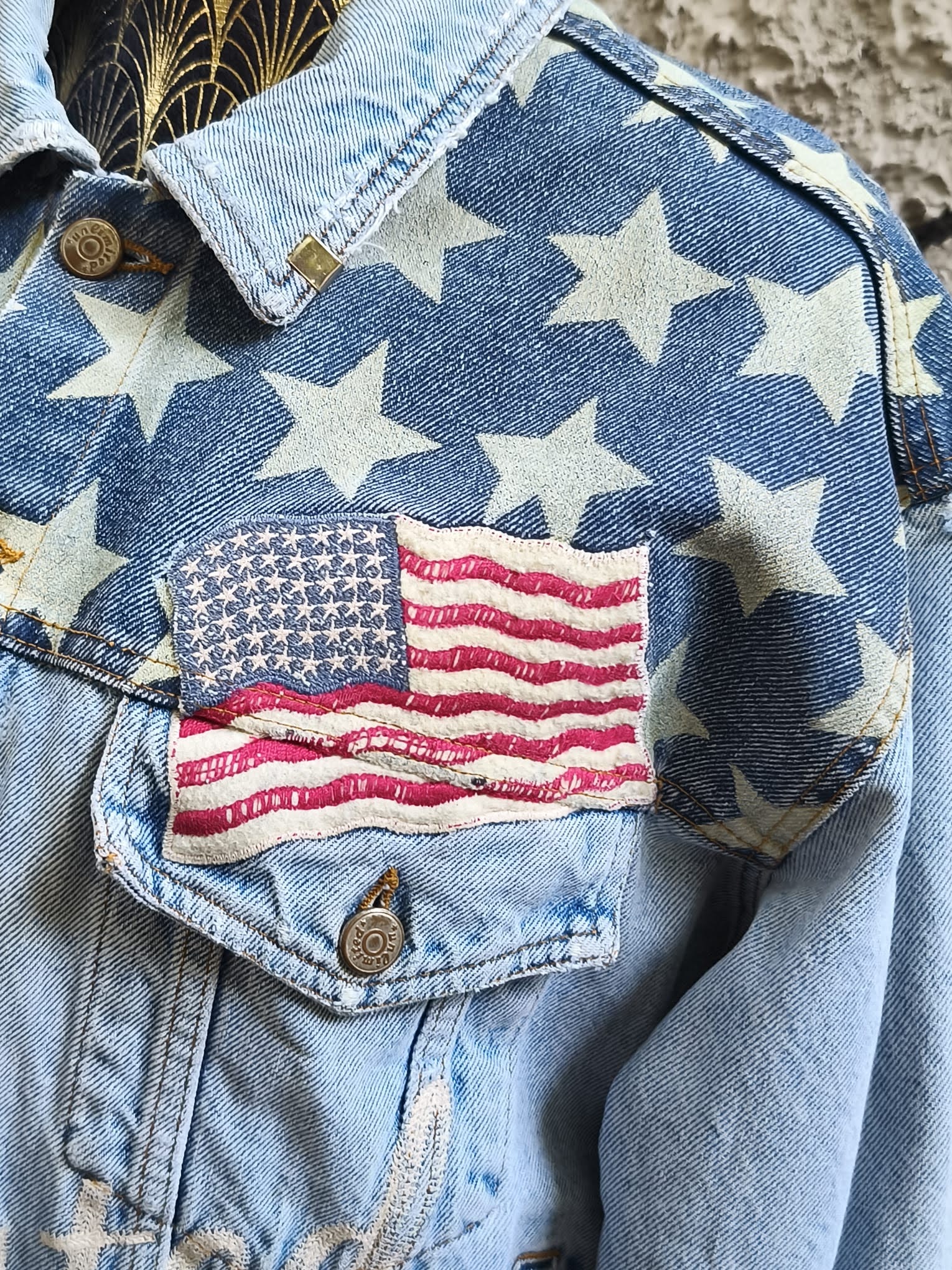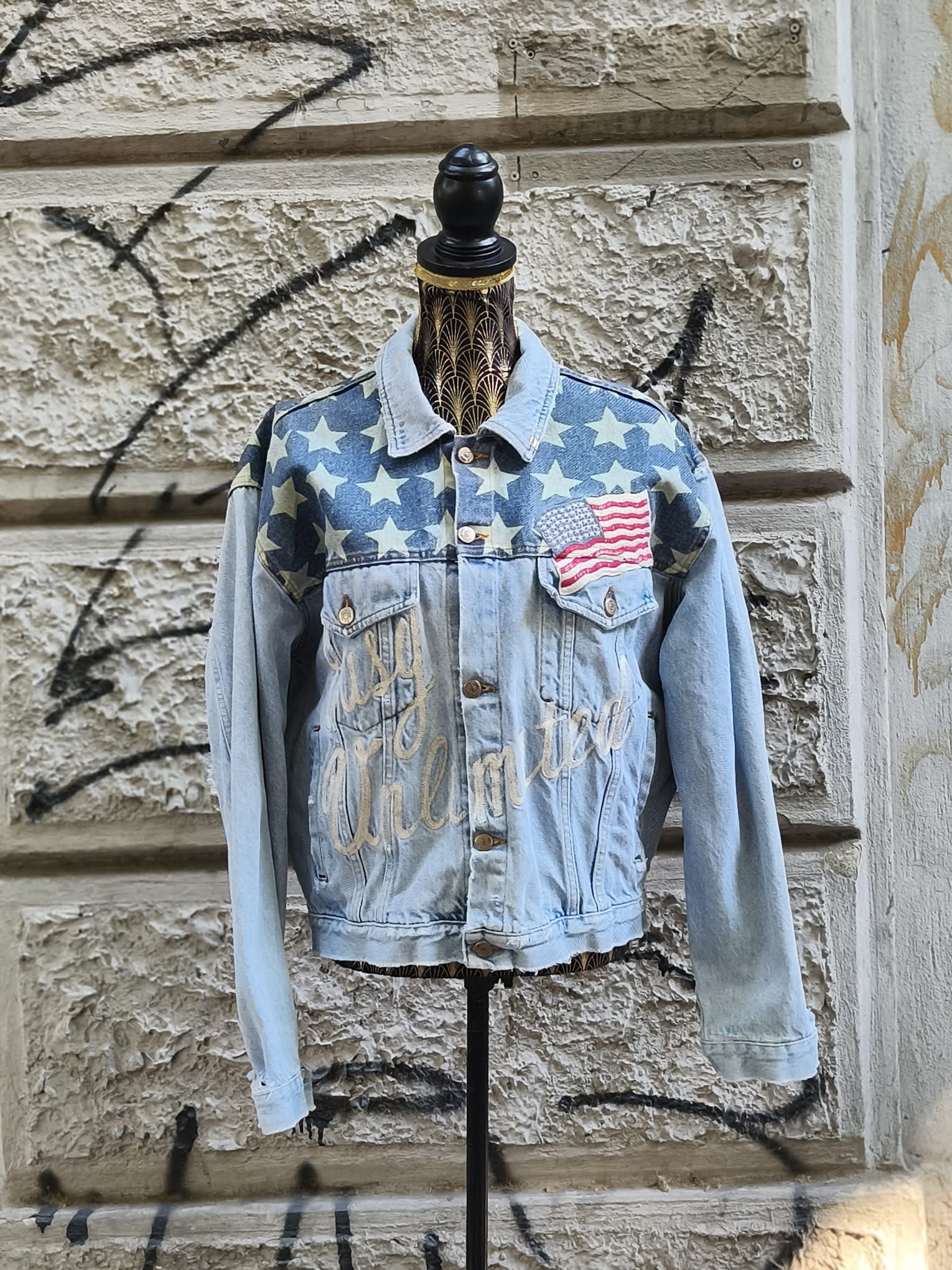 Dall'America degli anni 80,giacca vintage in jeans distressed.