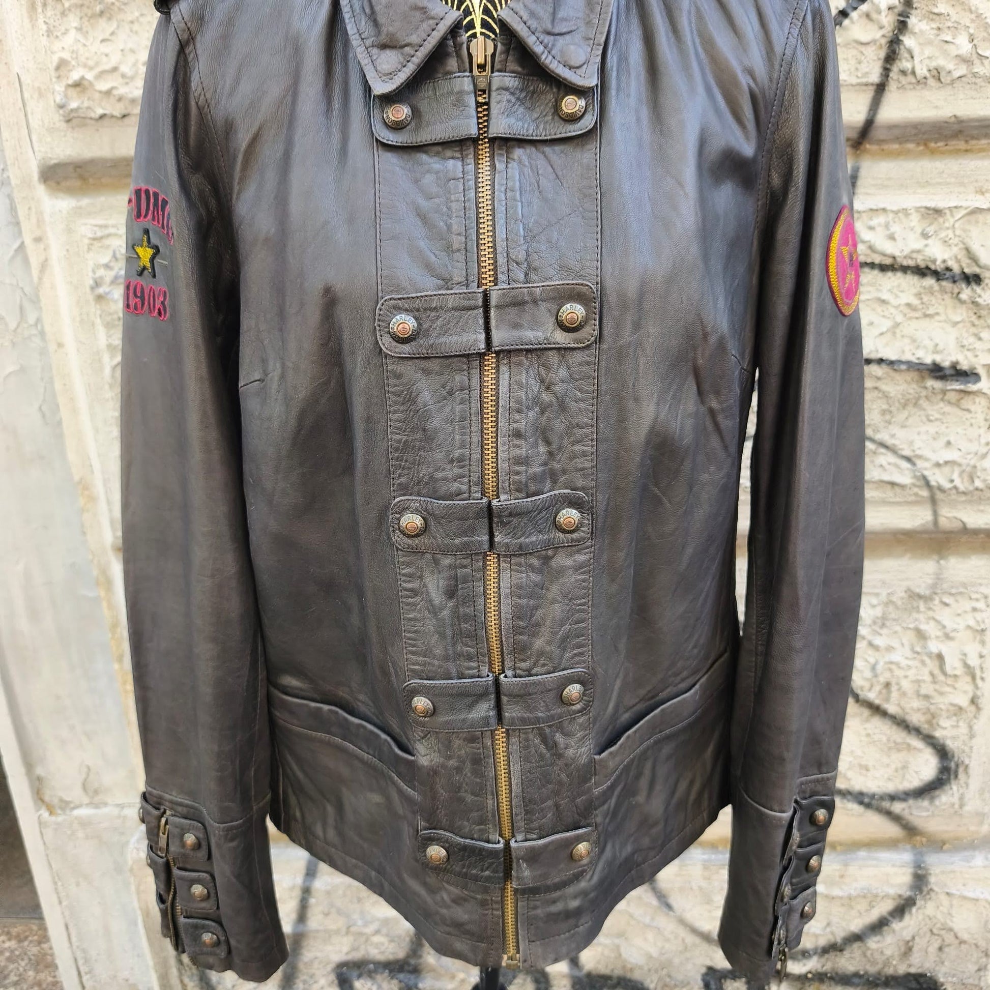 Giacca vintage Harley Davidson realizzata in vera pelle color testa di moro.