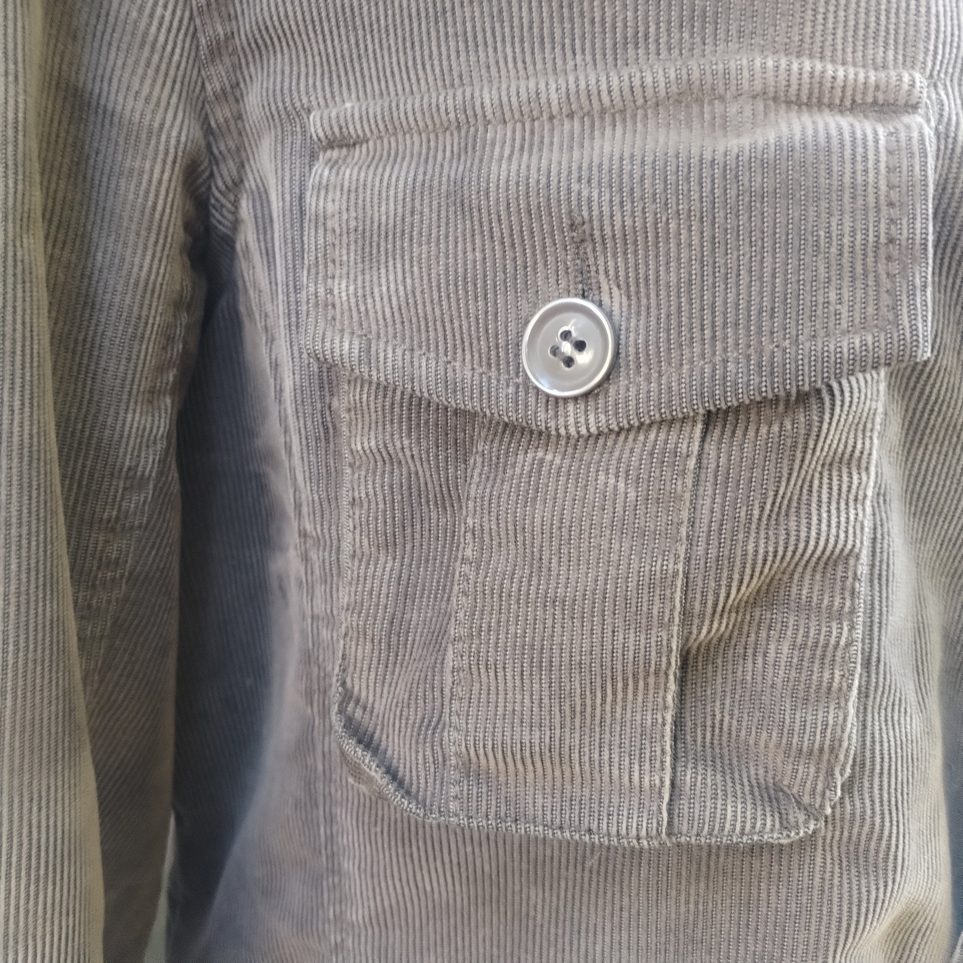Una giacca che unisce il fascino del vintage alla modernità del custom. Una giacca grigia in velluto, morbida e avvolgente, con un taglio ispirato alle uniformi militari, ma rivisitato in chiave contemporanea.