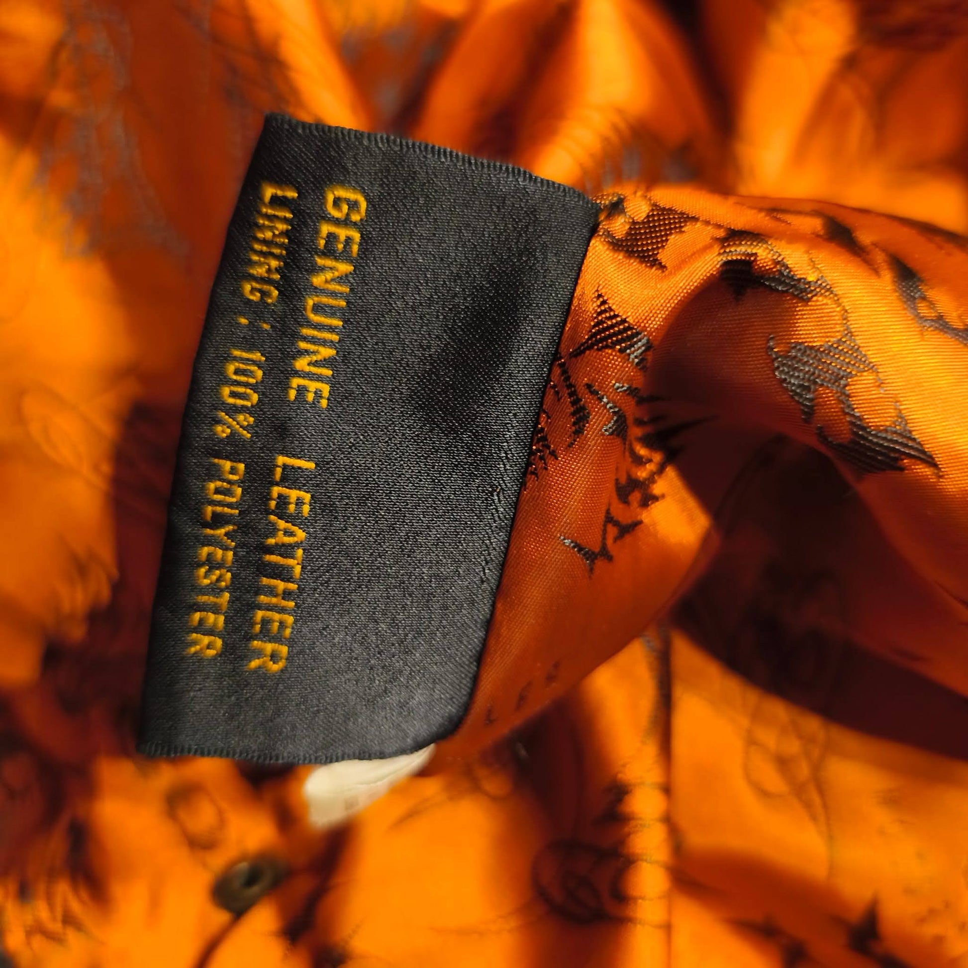 Realizzata in pelle,con inserto arancio sul davanti e scitta nera sul retro.