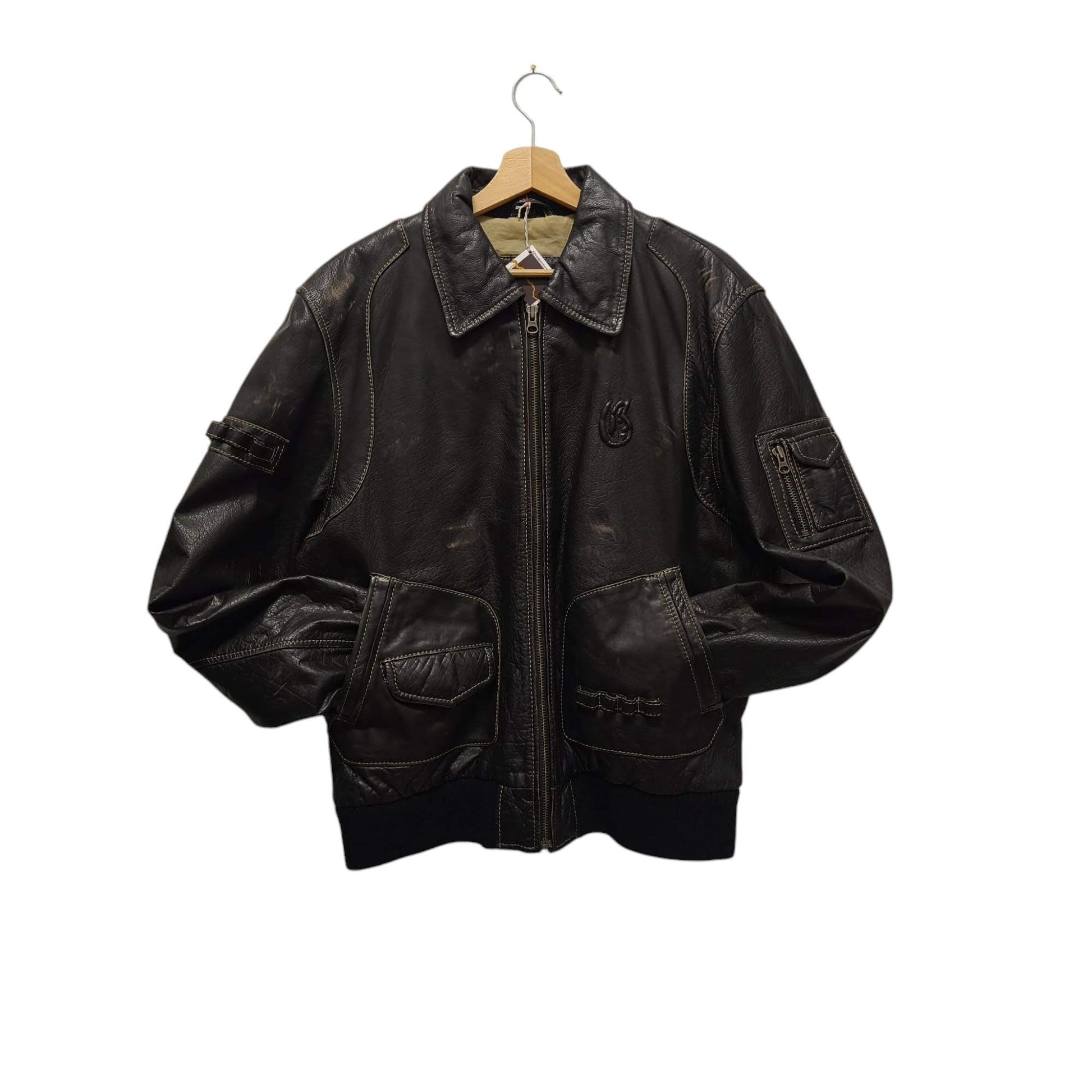Una giacca in pelle marrone vintage modello bomber. Un capo che ti trasporta direttamente negli anni Ottanta, un'epoca di sperimentazione e di stile audace. Questo bomber in pelle marrone è proprio così.
