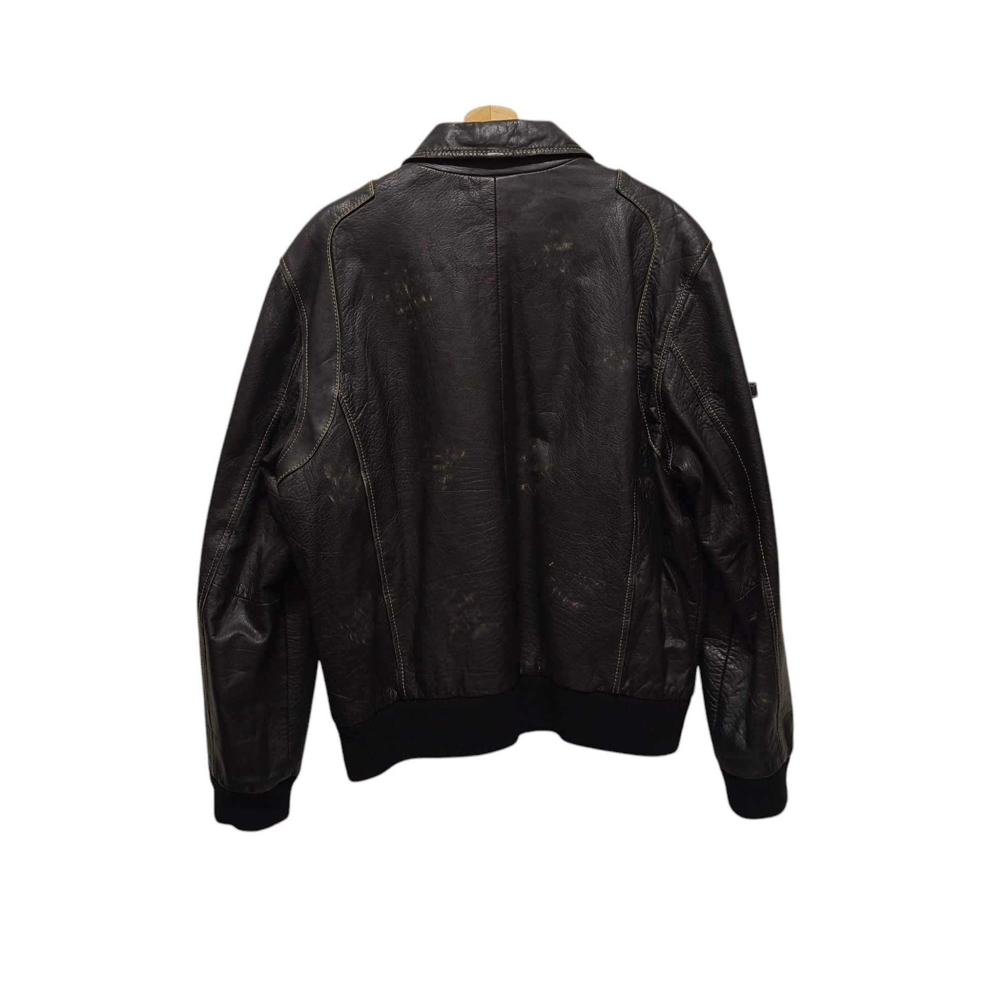 Giacca vintage in pelle marrone anni 80 modello bomber