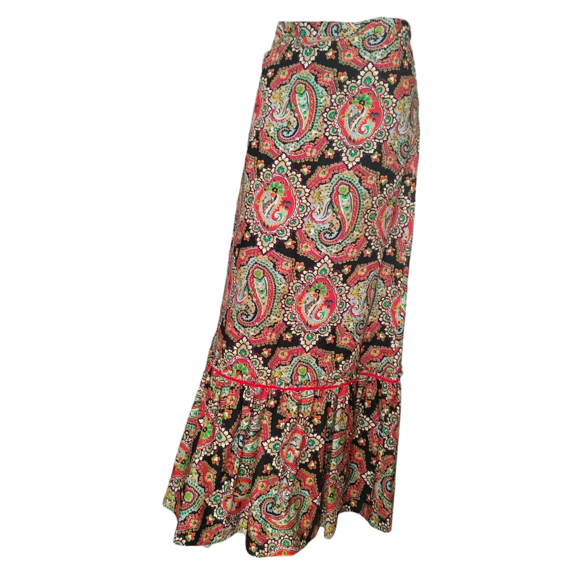 Lo stile anni '70: Questa gonna incarna perfettamente lo stile degli anni '70, un decennio caratterizzato da una forte voglia di sperimentazione e da un'estetica hippie e bohémien. Le fantasie jacquard, le balze e la lunghezza maxi sono tutti elementi tipici della moda di quegli anni.