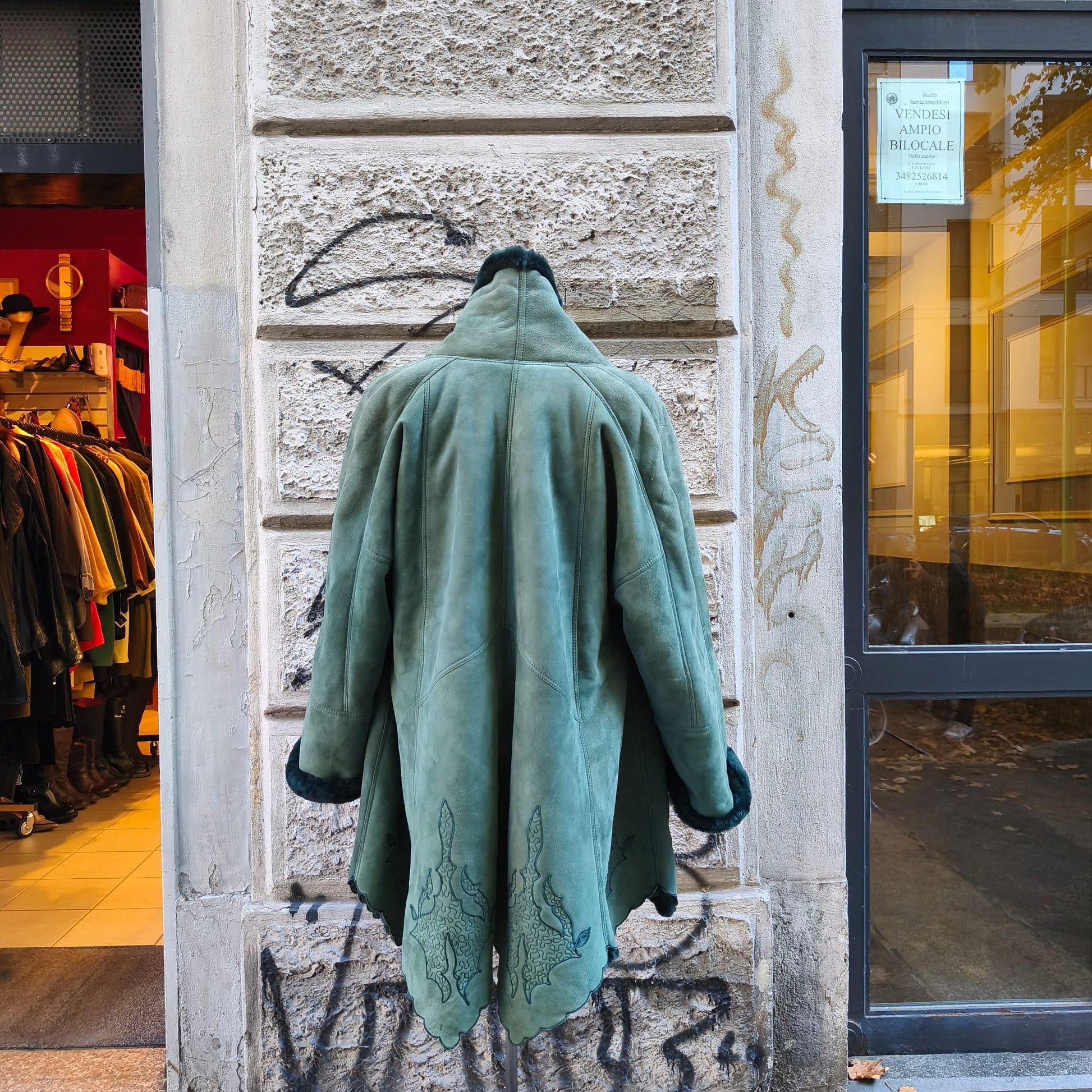 Questa giacca vintage in montone shearling verde smeraldo è un vero e proprio pezzo da collezione. Il suo design, audace e contemporaneo, la rende un capospalla in grado di trasformare qualsiasi outfit.