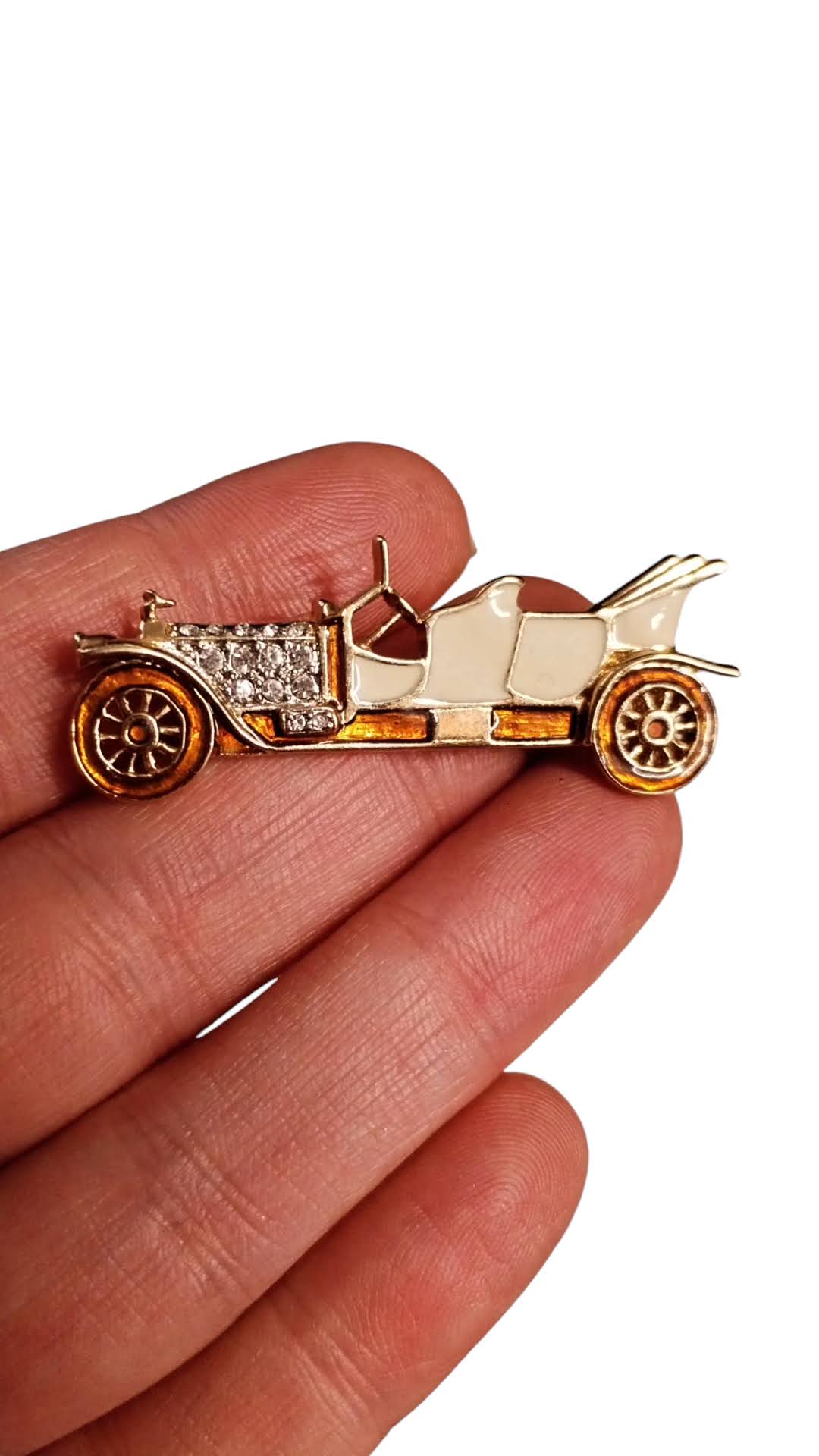 In conclusione, questa spilla a forma di macchina d'epoca è un gioiello unico nel suo genere, capace di catturare l'attenzione di chiunque ami il vintage e il design. È un accessorio che trasmette emozioni e che può diventare un oggetto da collezione o un regalo prezioso per un appassionato di automobili.
