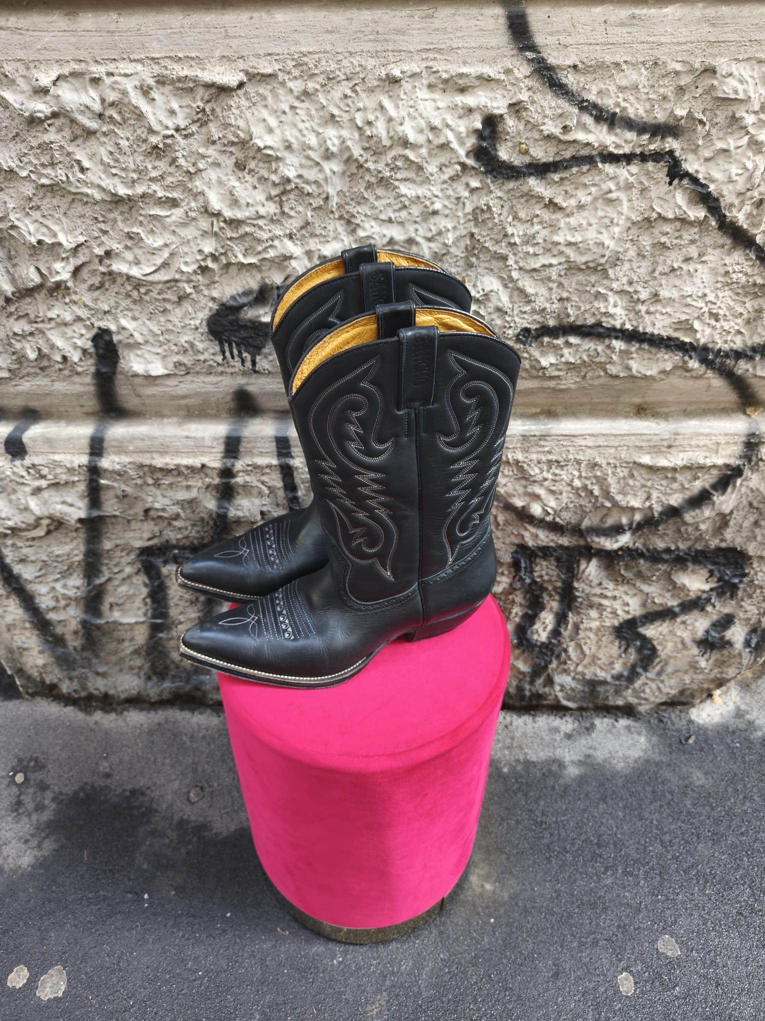 Stupendo stivale vintage in vera pelle nera.
