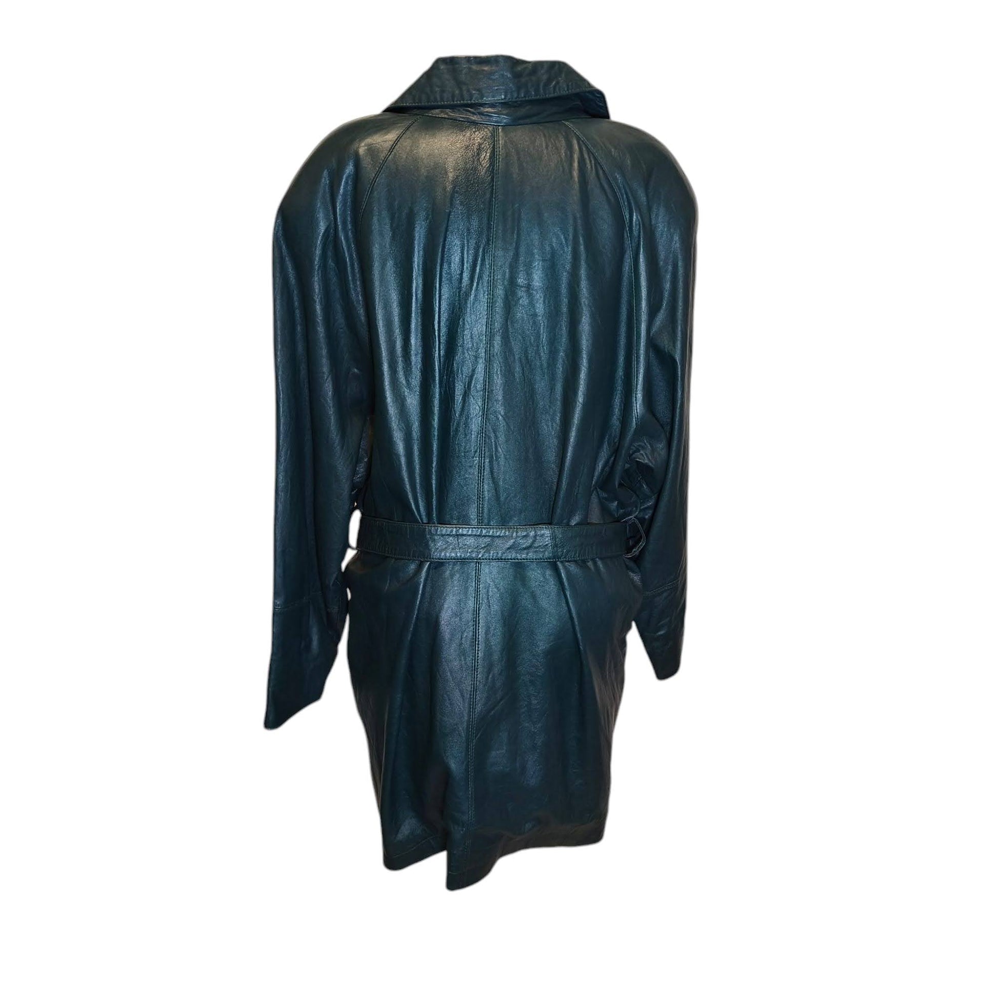 Un trench vintage che racconta una storia, un pezzo di storia della moda italiana degli anni ottanta. Un capo che, nonostante il passare del tempo, conserva intatto il suo fascino e la sua eleganza. Questo trench verde smeraldo in pelle è proprio così.