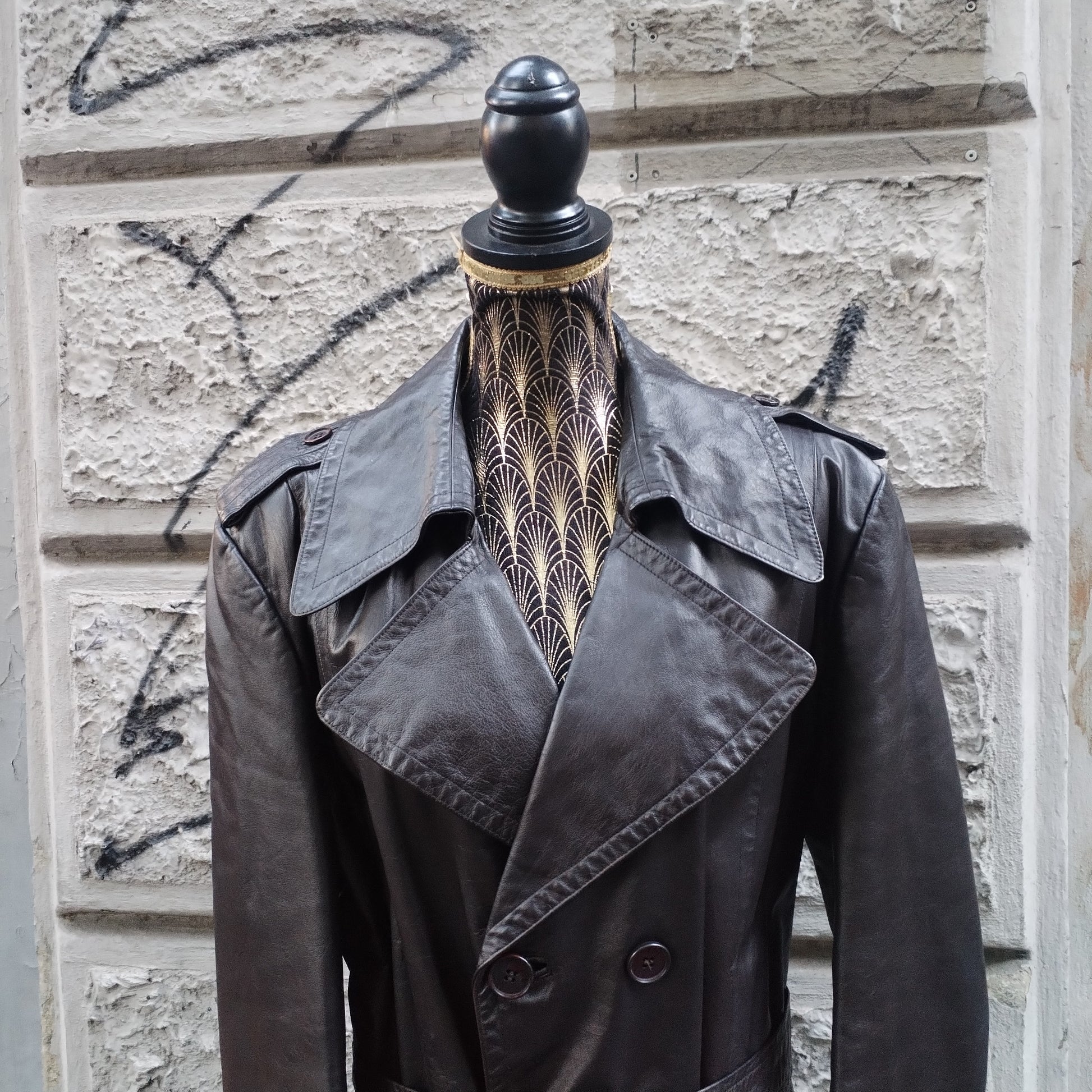 Trench vintage in pelle marrone