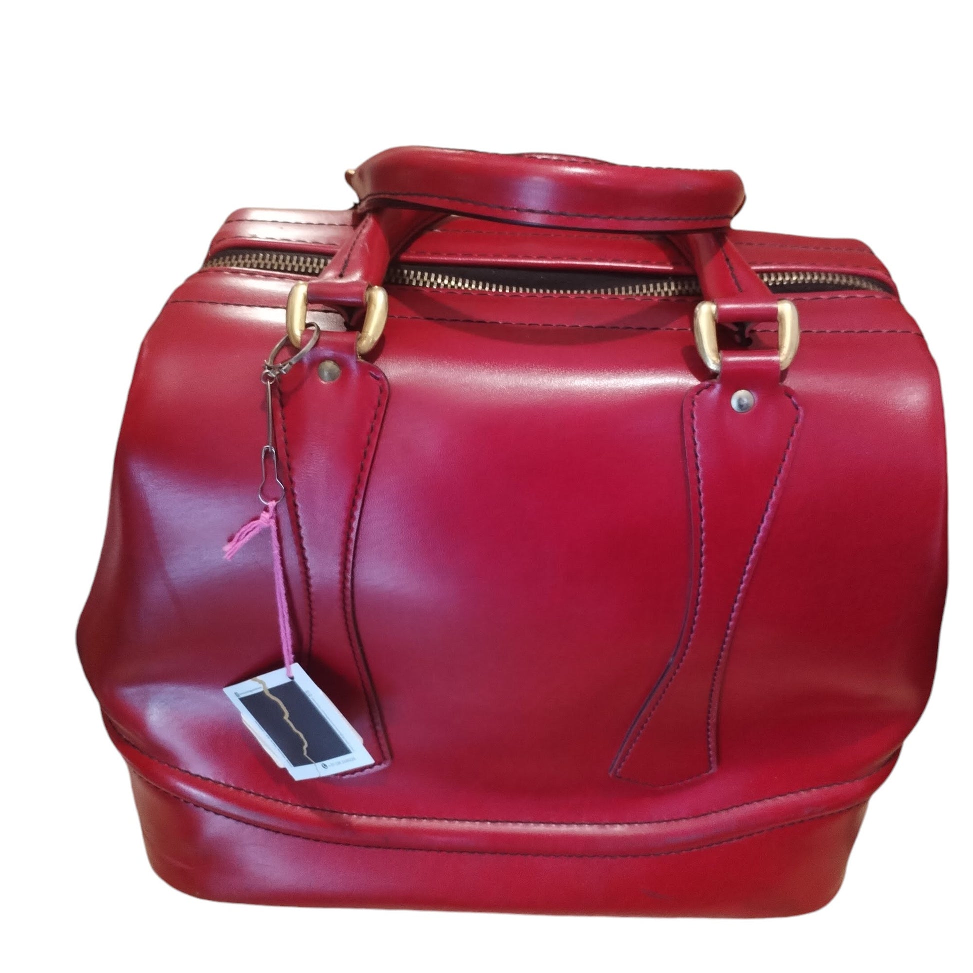 Con le sue generose dimensioni di 35 x 30 x 18 cm, offre uno spazio interno sorprendente, perfetto per contenere tutto ciò che serve per un viaggio o semplicemente per organizzare i tuoi effetti personali. La pelle rossa, morbida e lucida, ha sviluppato nel tempo una patina naturale che le conferisce un'eleganza senza tempo.